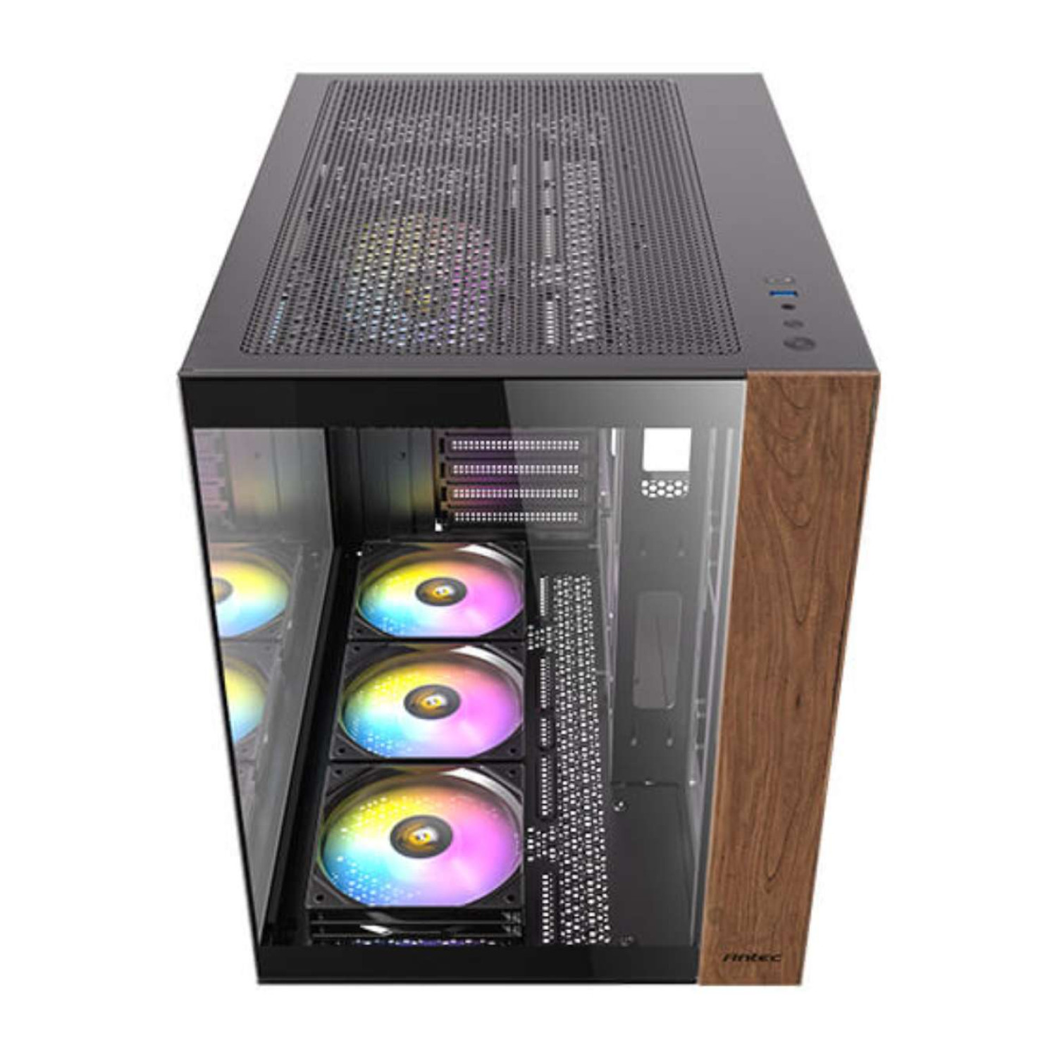 The ANTEC CX800 Wood ARGB Mid-Tower Gaming Case features a premium 270° panoramic tempered glass design with an elegant wooden front accent. With a dual-chamber layout, support for triple 360mm radiators, four pre-installed ARGB fans, and compatibility with ATX and back-connect motherboards, it delivers superior cooling, performance, and modern aesthetics.