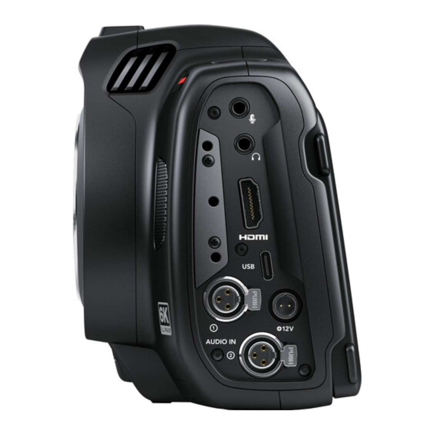 The Blackmagic Cinema Camera 6K includes a built-in stereo microphone and supports 2-channel audio recording. For professional audio input, it has two mini XLR mic/line inputs with +48V phantom power, along with a 3.5mm TRS stereo mic/line input. Monitoring is available via a 3.5mm TRS stereo headphone output. Audio is recorded at high quality to match professional workflows.