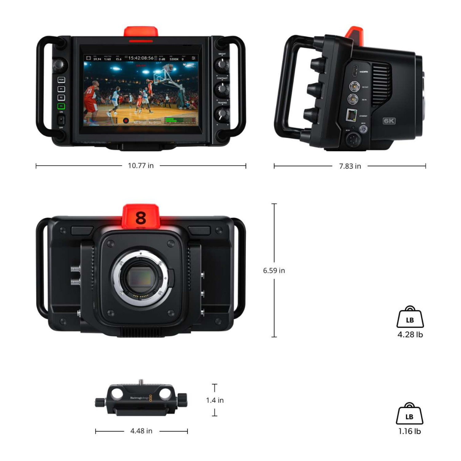 The camera provides 2 x 1/4-inch and 1 x 3/8-inch tripod mounts for flexible rigging.