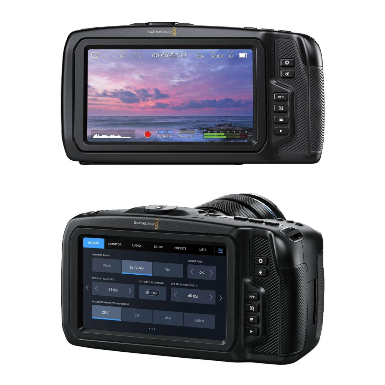 Blackmagic Pocket Cinema Camera is better than a simple video camera because it has professional features allowing you to create the same "look" as Hollywood feature films. The combination of high dynamic range, great low light performance and Blackmagic RAW gives you feature film images with precise skin tones and gorgeous organic colors. You get advanced features such as 4K or 6K models, large 5" LCD for easy focus, SD card and CFast media, external USB‑C media disk recording, EF or MFT lens mounts and more! DaVinci Resolve Studio is also included for editing, color correction, audio post and VFX!