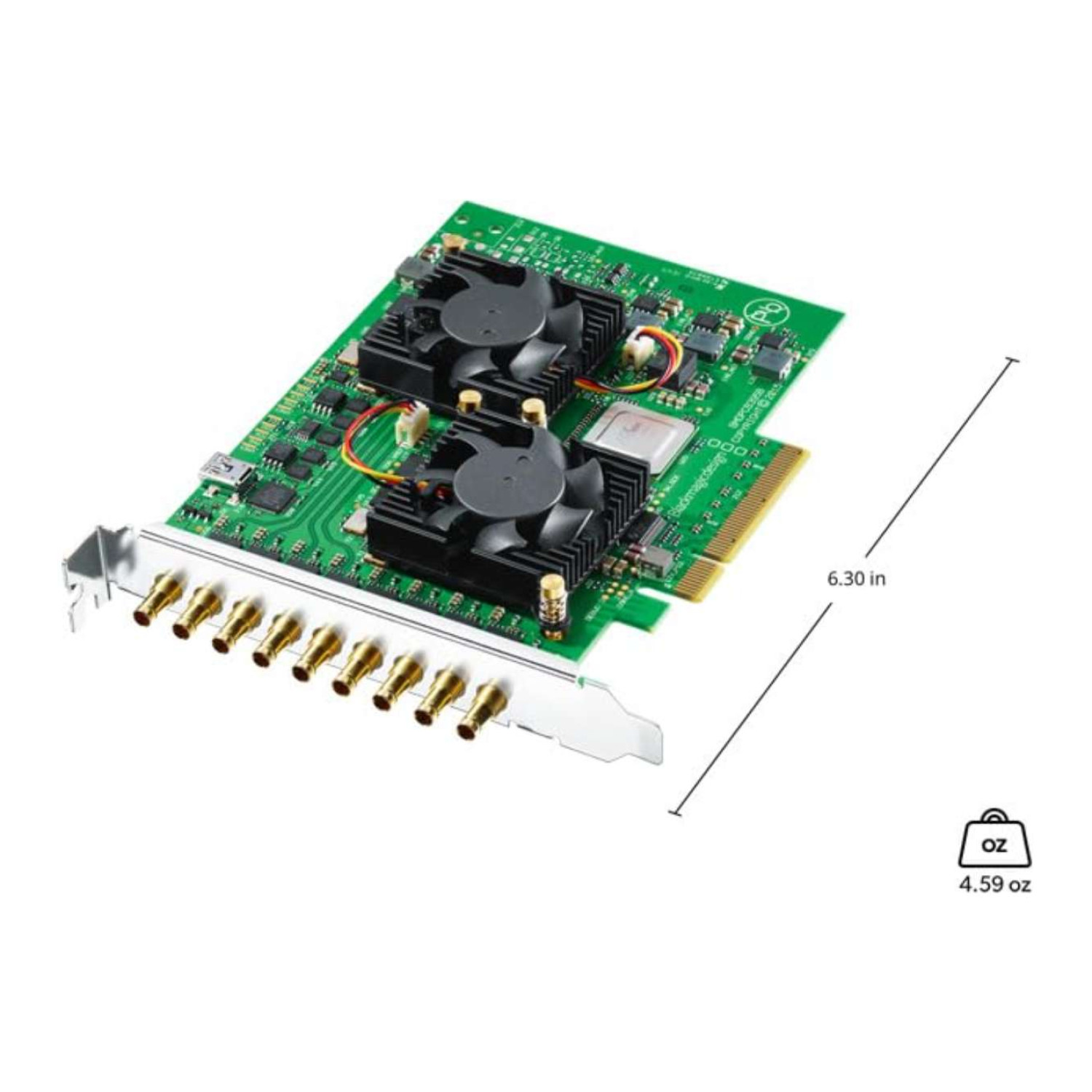 The DeckLink Quad 2 has a compact form factor with dimensions of 17.8 x 14 x 2.8 cm and weighs only 8 ounces, allowing it to fit seamlessly into a variety of system configurations without adding bulk.