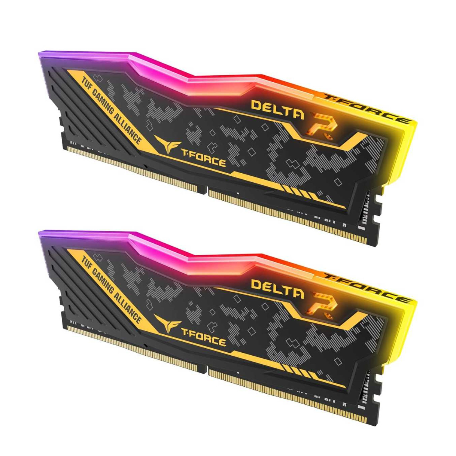 Designed specifically for desktop systems, the T-Force Delta TUF DDR4 modules are compatible with motherboards that support DDR4 DIMM memory. The 2×16GB configuration provides a combined 32GB capacity, enabling dual-channel operation that increases memory bandwidth and improves overall system efficiency for performance-oriented users.