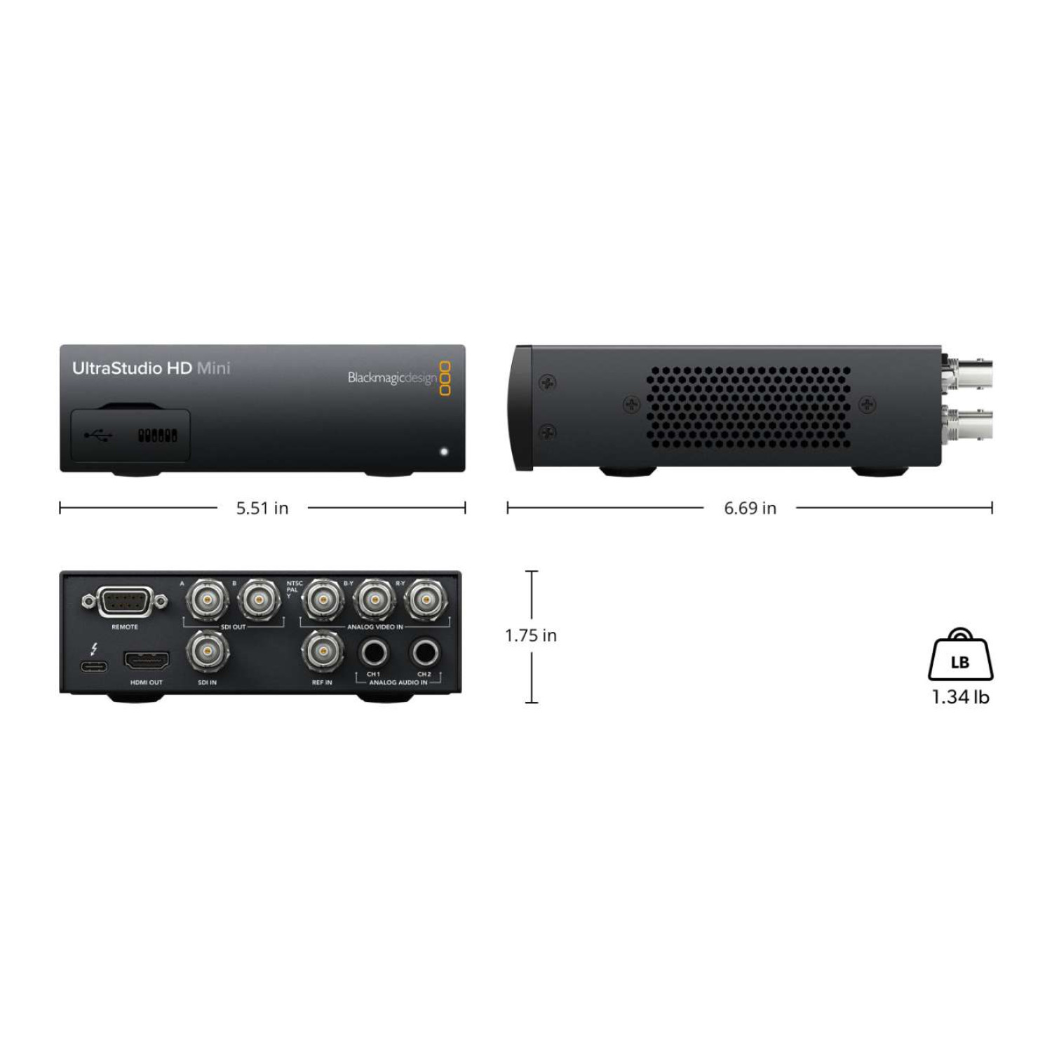 1 x Thunderbolt 3 (Mac & Windows). Powered via Thunderbolt. Supports Blackmagic Desktop Video SDK.